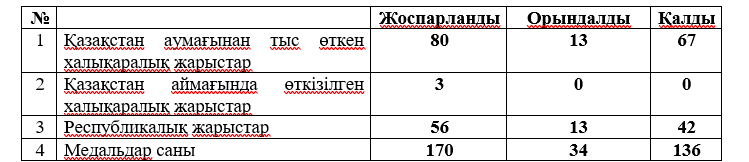 2026 жылдың І-ші тоқсанында  паралимпиадалық, паралимпиадалық емес және сурдлимпиадалық спорт түрлері бойынша штаттық және ұлттық құрама командалардың спортшылары халықаралық жарыстарға қатысуға бағытталған дайындық жұмыстарын жүргізді. Дайындық жұмыстары 2026 жылға арналған спорттық іс-шаралардың күнтізбелік жоспарына және қаржылық күнтізбеге сәйкес жүзеге асырылды.