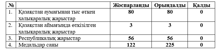 2025 жылы паралимпиадалық, паралимпиадалық емес және сурдлимпиадалық спорт түрлері бойынша штаттық және ұлттық құрама командалардың спортшылары халықаралық жарыстарға қатысуға бағытталған дайындық жұмыстарын жүргізді. Дайындық жұмыстары 2025 жылға арналған спорттық іс-шаралардың күнтізбелік жоспарына және қаржылық күнтізбеге сәйкес жүзеге асырылды.